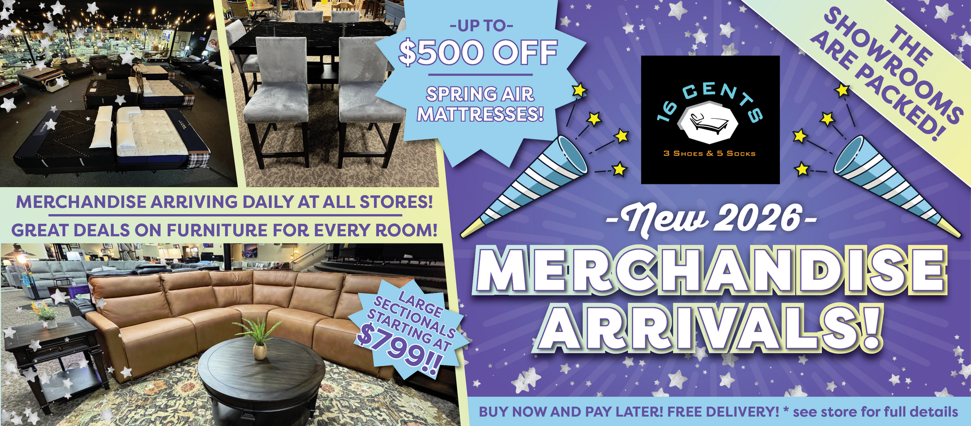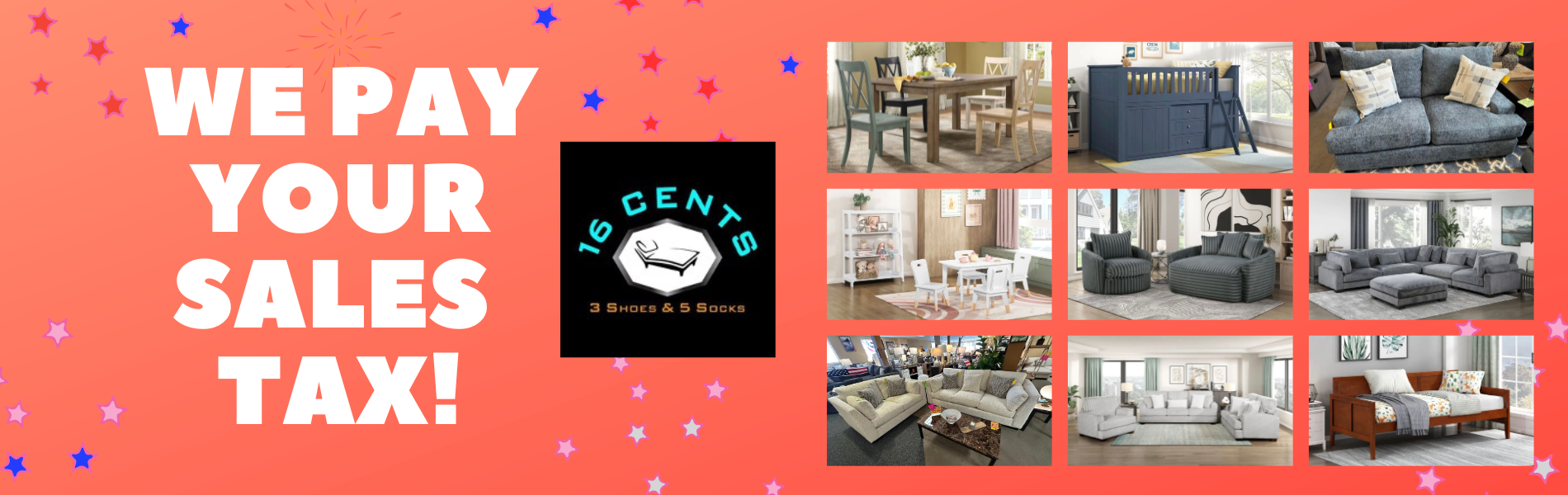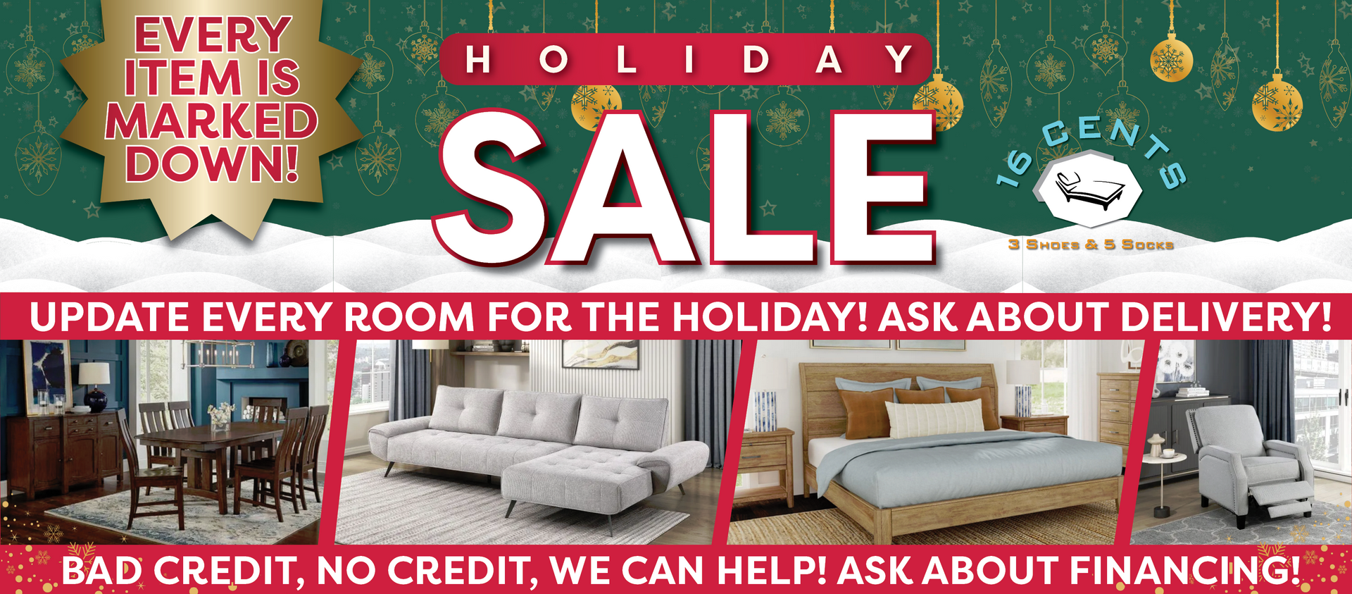 16 Cents, 3 Shoes & 5 Socks offer furniture for every lifestyle and budget for every room in your home or office.