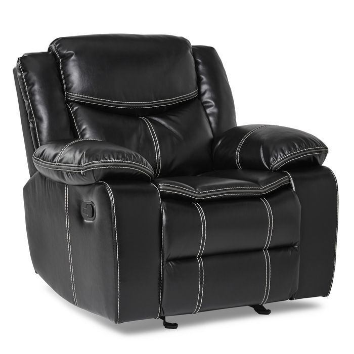 With the soothing rock of the reclining chair, your comfort is taken care of in the Marille Collection. The collection is offered in black faux leather.