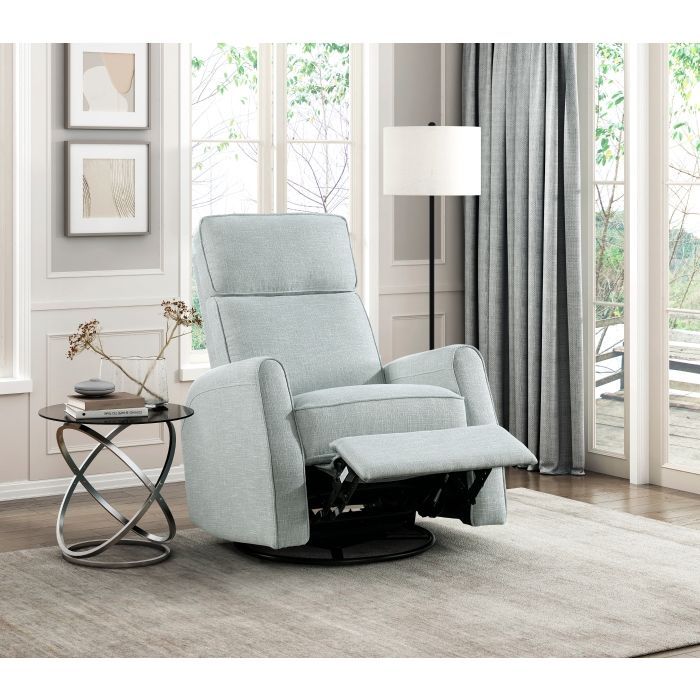 Indulge in ultimate relaxation with the gliding swivel recliner, a perfect addition to your nursery, living room, or any space where comfort is key. Upholstered in a soft and durable textured microfiber, this recliner invites you to unwind with its gentle gliding motion and smooth 360-degree swivel, allowing you to easily soothe a baby or engage in any room. The supportive foam padding over pocket coils ensures exceptional seating comfort, while the convenient pull-handle reclining motion lets you effortlessly find your ideal lounging position. Built with a sturdy plywood frame featuring a metal-reinforced seat and a 300lbs weight capacity, this recliner is designed for lasting durability and comfort. The attached back and seat cushions maintain a neat appearance, making this gliding swivel recliner a haven for relaxation and a stylish addition to your home.