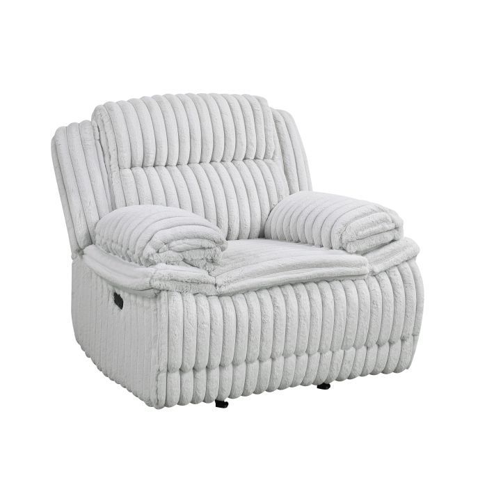 The modern profile of the Clifton Collection serves to provide comfort, function and style to your home’s casual living room. The gray polished microfiber that covers the plush arms and seating of the chair lends to the decorative versatility of the collection. The glider reclining chair features a manual motion mechanism operating with the pull of a side-mounted tab, that once engaged, take you from seated to reclined in an easy motion.
