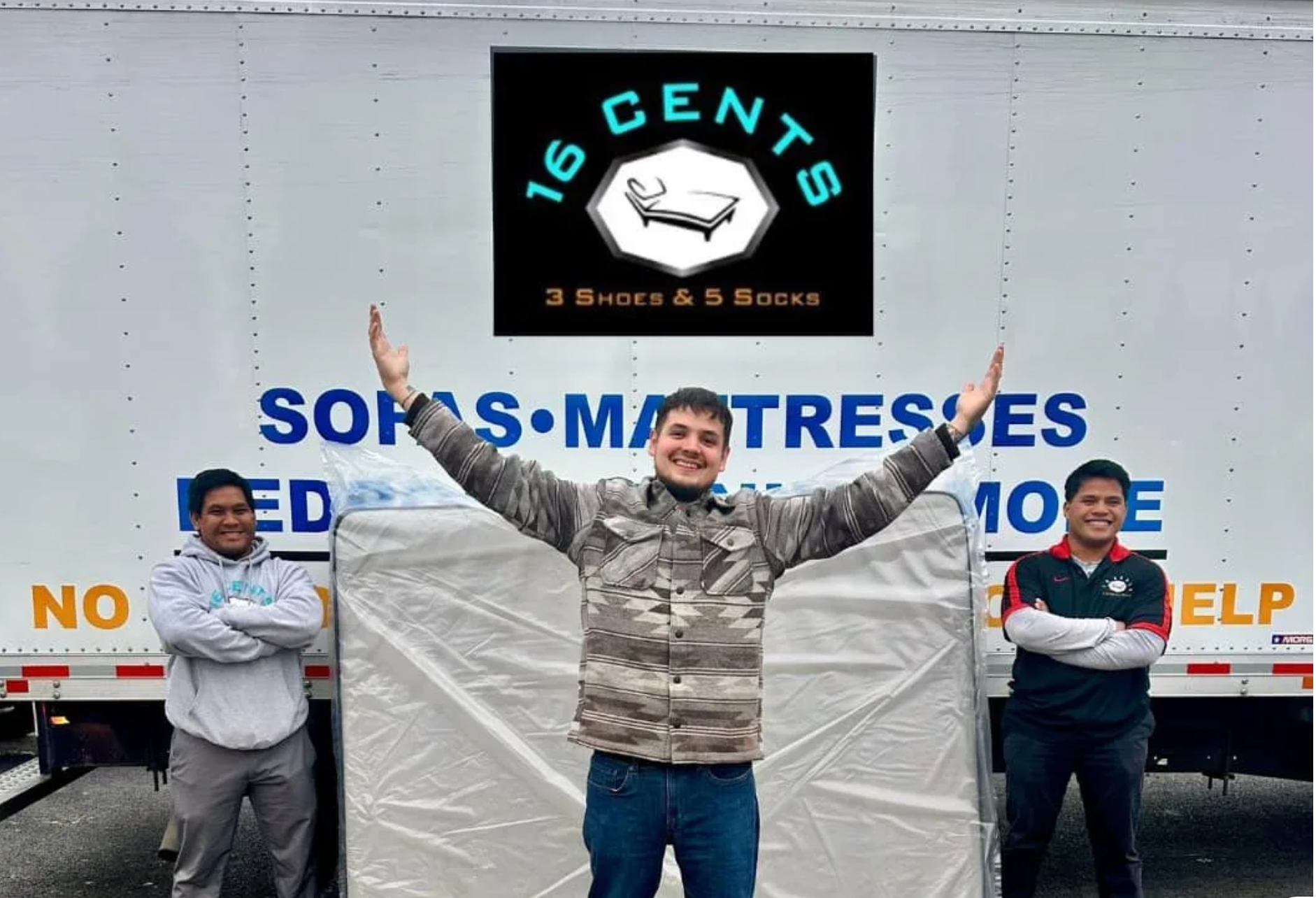 Due to addiction and homelessness, Jason McSteen had lost everything when he walked into Union Gospel Mission on December 1, 2012, with 16 Cents, 3 Shoes, & 5 Socks. That's why he named his store "16 Cents, 3 Shoes & 5 Socks." Now we celebrate our 8th Anniversary! We have four furniture and mattress stores, served thousands of customers, and donated tens of thousands of dollars to charities that help the lonely, broken, and hungry. Thank you for shopping at our store with a story. We wouldn't be here without you. We love our customers, and at one point celebrated 900 customers! This month, we celebrate 20,000! Thank you for your loyalty. — feeling grateful.