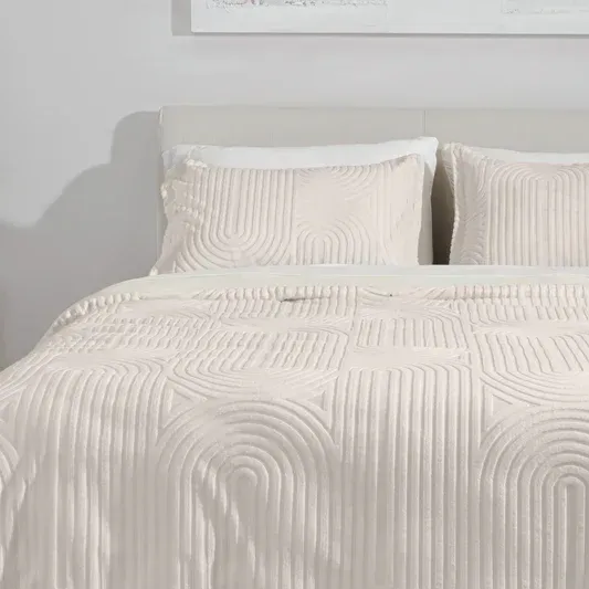 Design a bright, elegant retreat with this stunning pearl white bedroom collection. The centerpiece is a sophisticated headboard upholstered in soft, inviting corduroy fabric, adding luxurious texture to the crisp finish. Crafted for quality, every drawer features classic dovetail construction and operates on smooth full-extension ball-bearing glides. The clean, contemporary aesthetic is completed with sleek silver-tone edge pulls that contrast beautifully with the bright white wood finish, offering a modern touch.