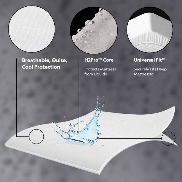 *Quiet and breathable laboratory-certified H2Pro™ membrane is liquid proof and dust mite proof