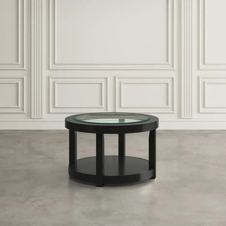 The convenient pairing of the Amara Collection’s cocktail and two end tables provides an easy addition to your home’s living room. The elegant contrast of the round black tempered glass tabletops, gold-hued banding, and metal legs creates a modern look while the round shape of the cocktail table, and two end tables, presents a classic profile, and ample tabletop display space.