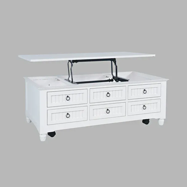 Bring a touch of rustic charm to your living space with our occasional collection. Expertly crafted from pine veneer, wood, and engineered wood with a rich brown finish, these pieces combine rugged style with smart functionality. From the lift-top cocktail table that reveals hidden storage to the chairside table with an adjustable shelf, each item is designed to help you organize and simplify your life. Enjoy the perfect blend of style and convenience with our farmhouse-inspired end table and its smooth-gliding drawer and open shelf. With distinctive barn-door details and gunmetal accents, this collection offers a perfect blend of rustic character and traditional function.