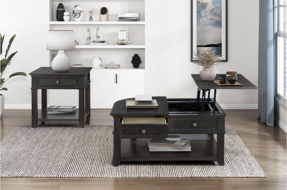 Transform your living space with our sophisticated Muriel Collection, designed for modern living with a touch of classic elegance. This curated set, featuring a versatile lift-top cocktail table and a convenient charging end table, is crafted from a durable blend of elm veneer, solid wood, and engineered wood, ensuring both lasting beauty and exceptional functionality.