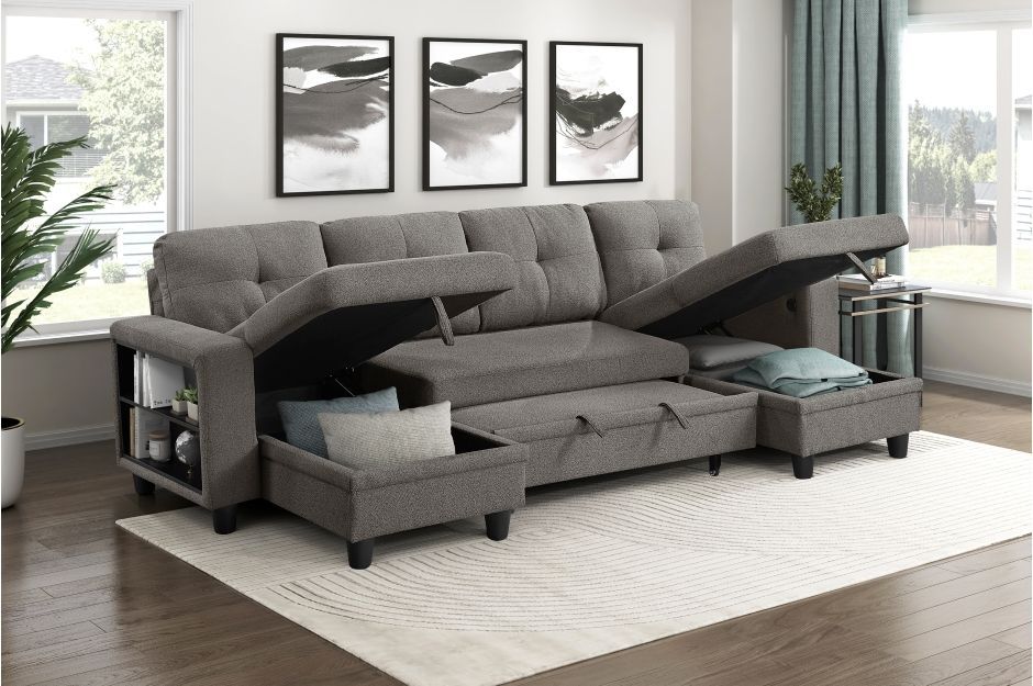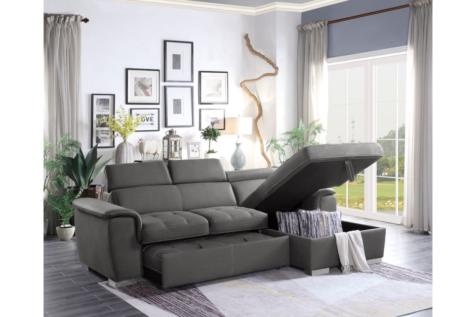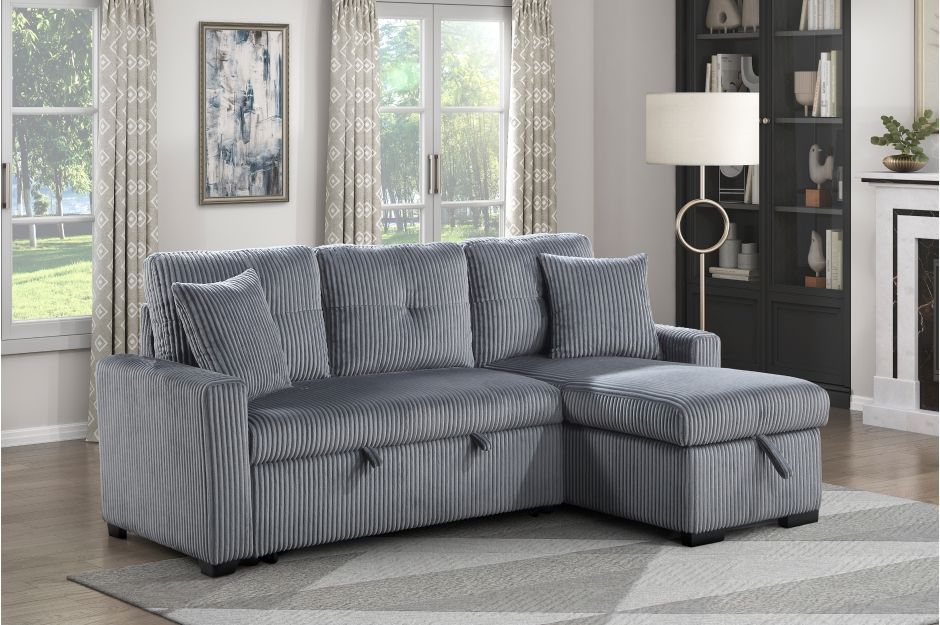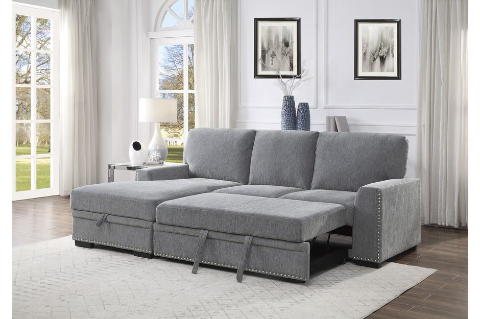 AG9402GRY 2pc Reversible Sectional with Pull-out Bed and Hidden Storage