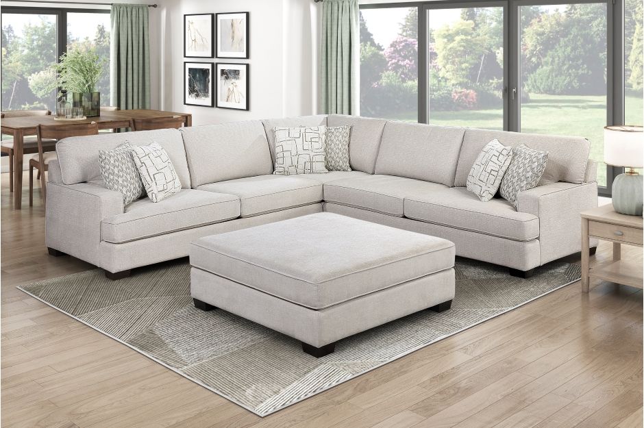 Create your dream living space with our versatile chenille sectional collection. Available as individual components—including a left-side/right-side 2-seater, corner seat, and oversized ottoman—or pre-configured as a 3 or 4-Piece Sectional Sofa, this collection offers maximum flexibility for any room size. Each piece is upholstered in a soft, light-toned chenille fabric and built on a durable solid wood frame with plush high-density foam over pocket coils for exceptional support. For easy maintenance and lasting comfort, the cushions are reversible and feature removable, zippered covers, complete with decorative pillows to enhance your custom arrangement.