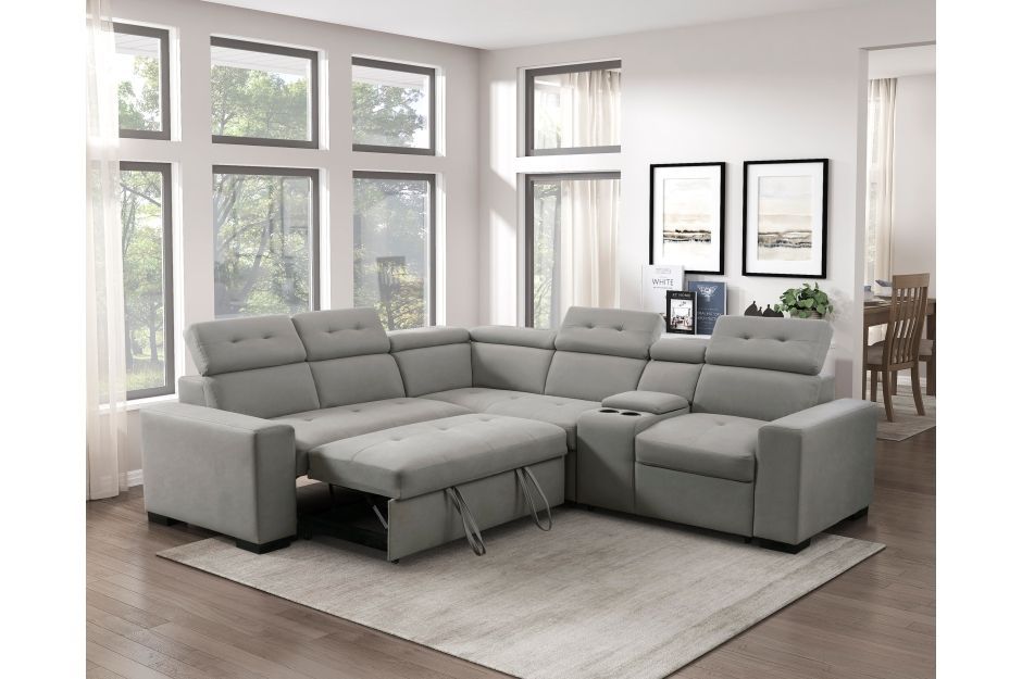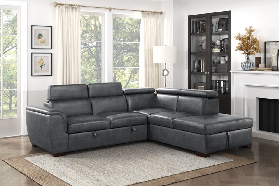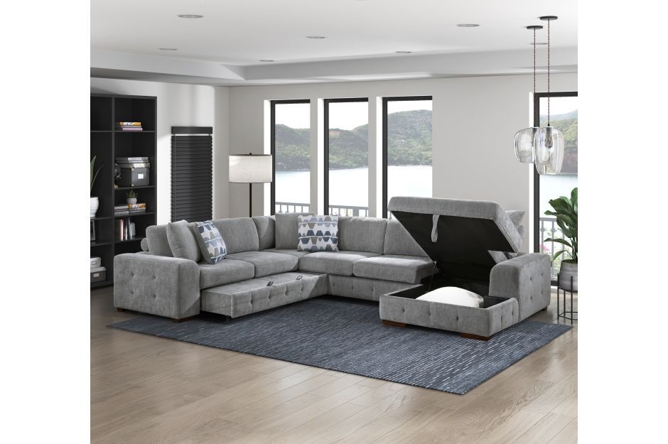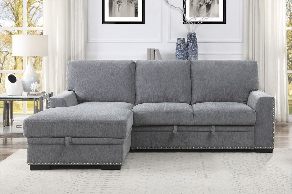 9624GY 2pc Sectional with Chaise, Pull-out Bed & Storage