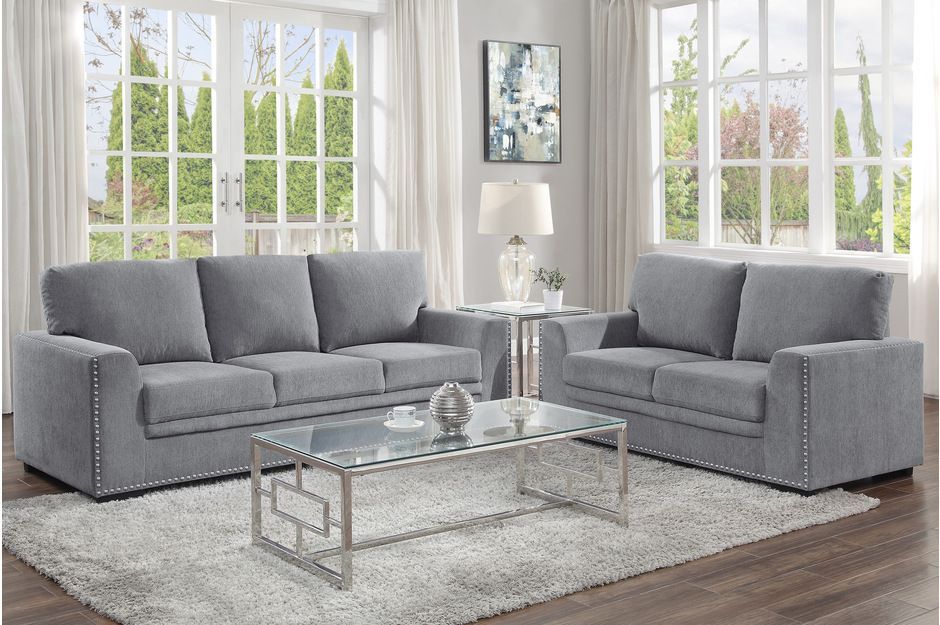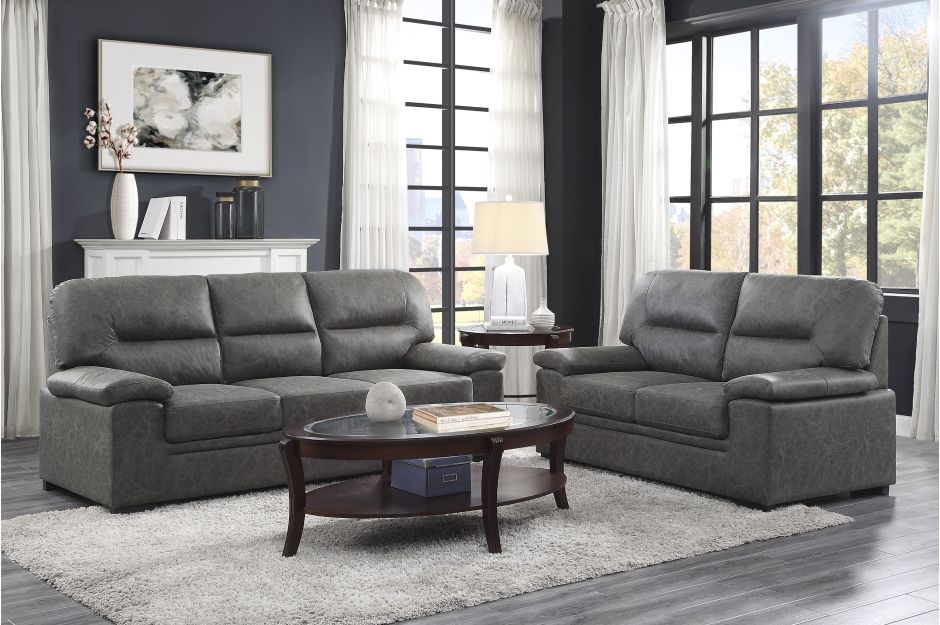 The sleek profile of the Keighly Collection will be the perfect complement to your modern living room. The seating group features a gray fabric cover for the ultimate decorative versatility, while pillow-top arms and plush seating create a platform that is perfect for your comfortable seated relaxation.