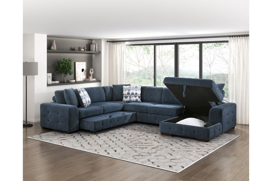 9630 Sectional with Chaise, Pull-out Bed, & Storage