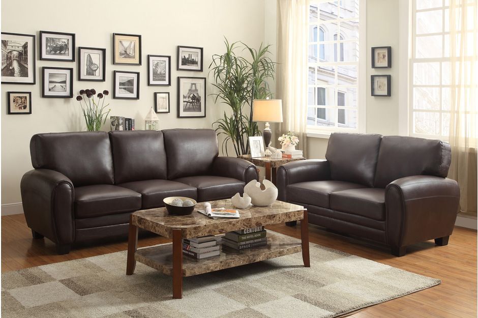 The elements that define modern style create a timeless look for your home with the addition of the Malcolm Collection. Track-style arms and defining welt lend a tailored aesthetic to the clean lines of the sofa, love seat, and chair making the collection well-suited for modern, transitional, rustic, or industrial inspired spaces. The collection is covered in brown faux leather upholstery further lending to the decorative versatility of this modern-classic offering.