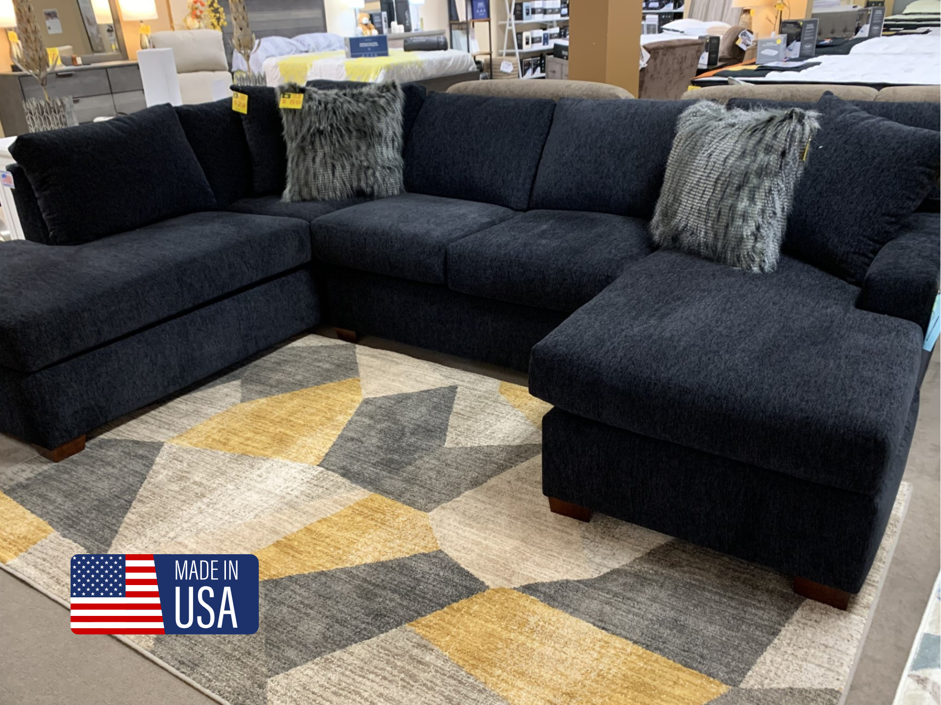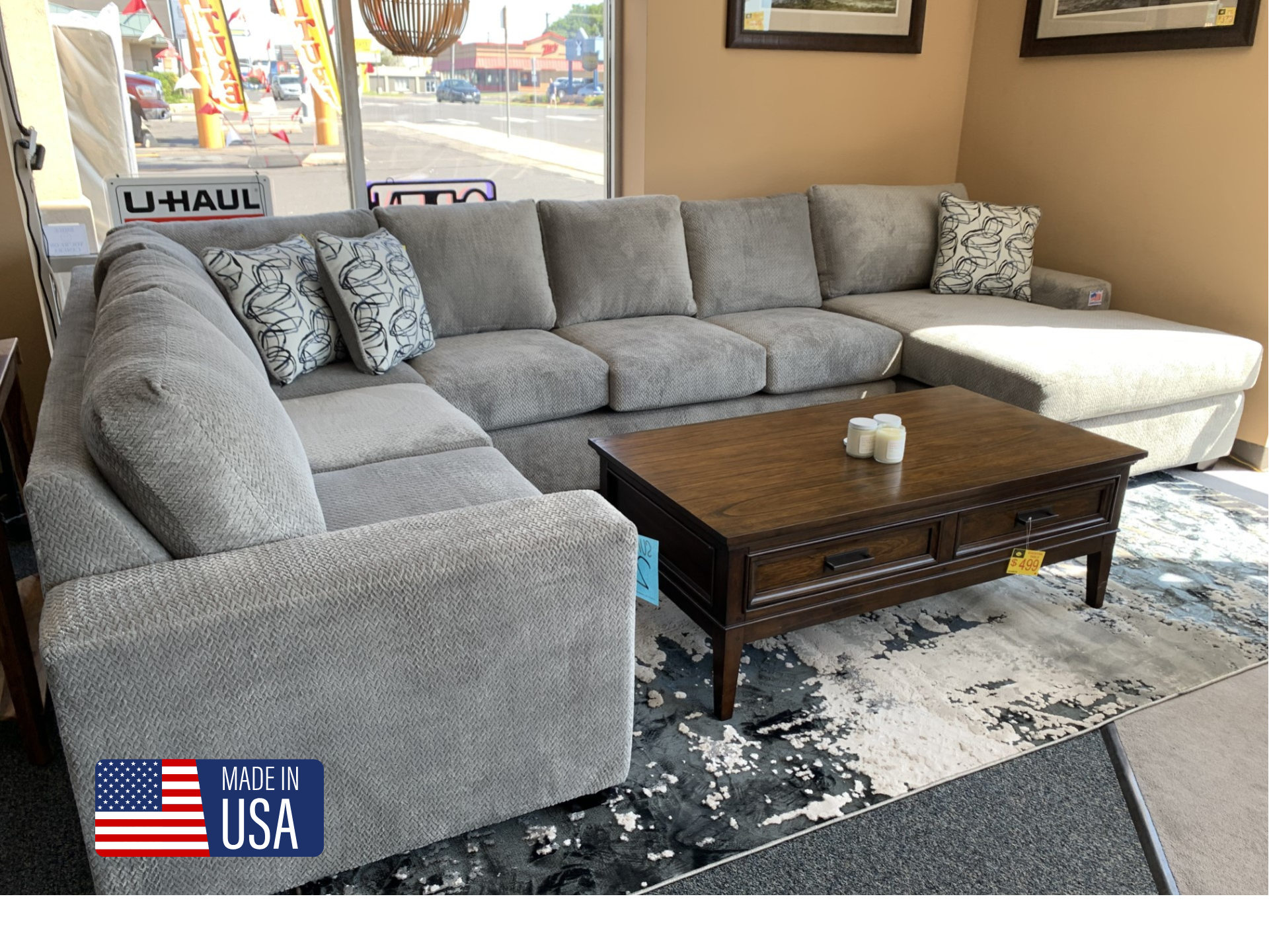 Comfort and versatility merge with the addition of the Michigan Collection, its functionality going beyond that of a traditional sofa. Covered in dark gray polished microfiber, the transitional profile of this seating group is complemented by plush, contoured tufting and pillowtop arms. Conveniently stored beneath the sofa is a pull-out trundle that rises to create a bed while the top of the attached chaise opens to reveal under-seat storage. The left-side chaise and right-side 3-seater are configured to fit perfectly in your available space.