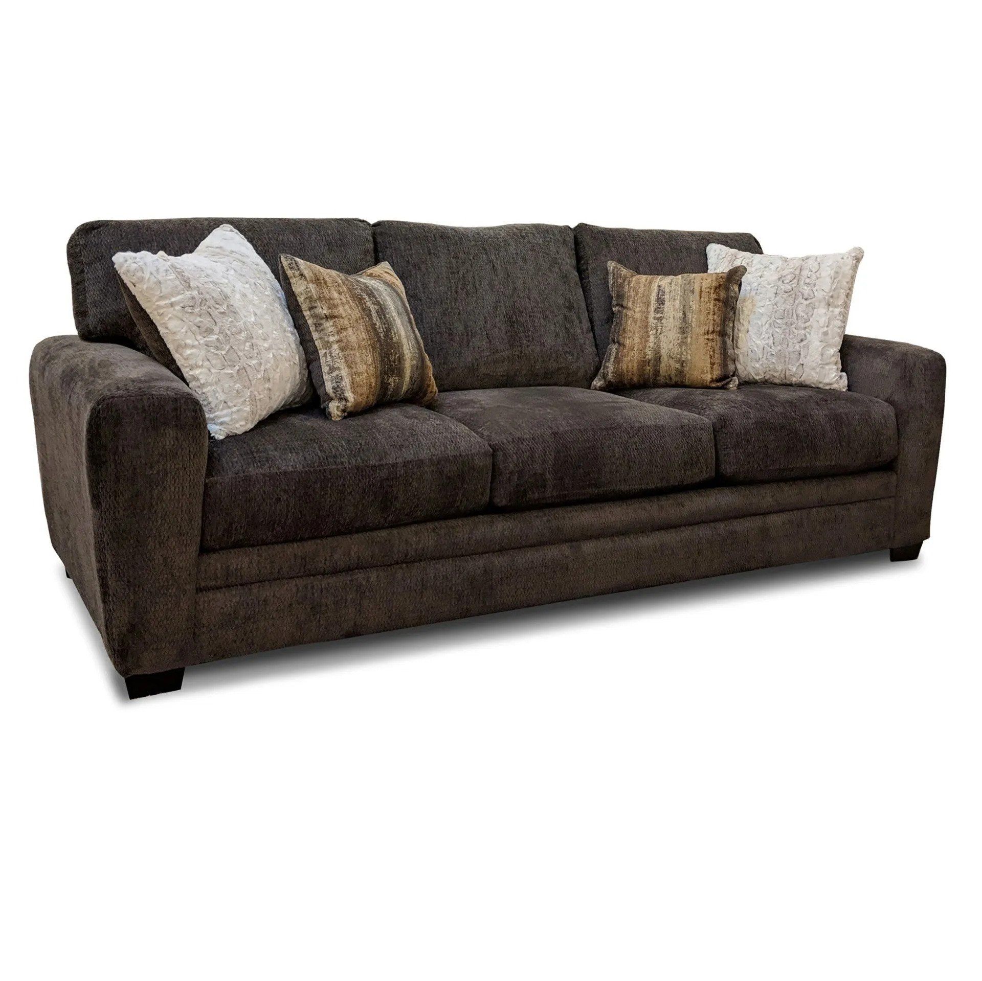 Timeless design never goes out of style, and the classic look of the Janne Collection follows the mid-century aesthetic of clean lines and modern sensibility. Brown, cafe-hued, textured microfiber upholstered fabric covers the retro-inspired frames of the sofa, love seat, and chair with geometric print toss pillows and walnut-finished wood legs providing complementing accent to the group. Contour stitching lends scalloped detail to the seatback’s profile, and front, while the prominent framing of the collection’s arms solidifies the Mid-Century Modern look. The collection also features reversible seat cushions.