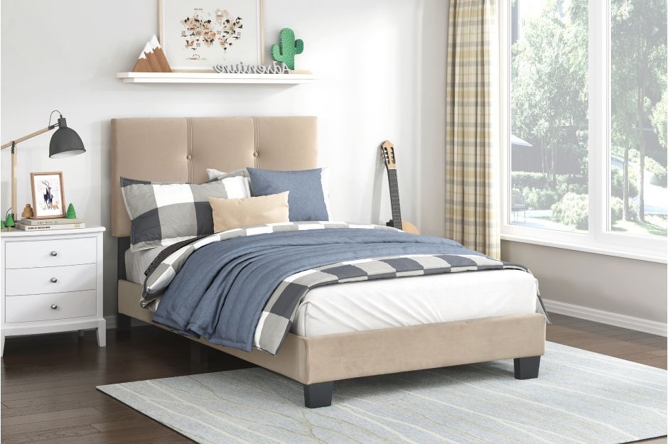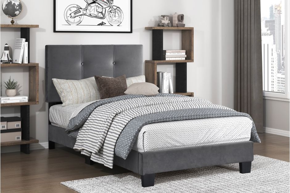 Providing convenient sleep space within your home is effectively solved with the addition of the Newberry Collection. Velvet fabric upholstery covers the upholstered bed and is offered in either brown or dark gray for compatible decorative pairing to your home’s décor with its button-tufted accenting providing classic detail. The bed’s adjustable-height headboard, low-profile footboard, and rails are packaged within one box for ease of shipment.