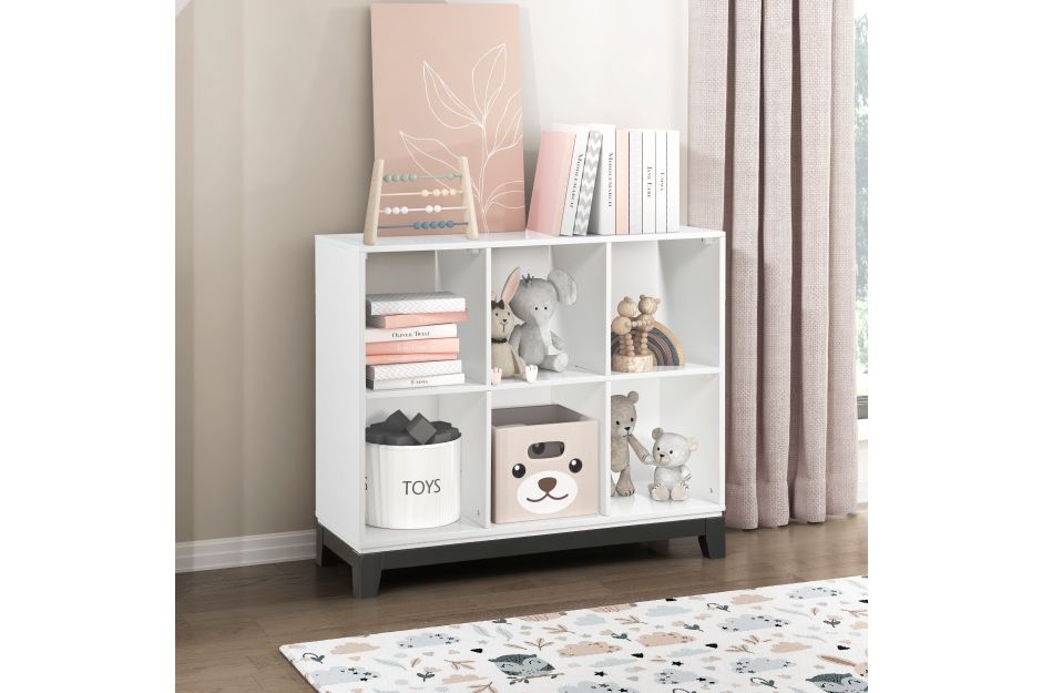 The Garretson Collection blends transitional lines with rustic styling to create an elegant addition for your bedroom, living room, or home office. The 6-shelf bookcase features a white finish and contrasting black finish base rail.